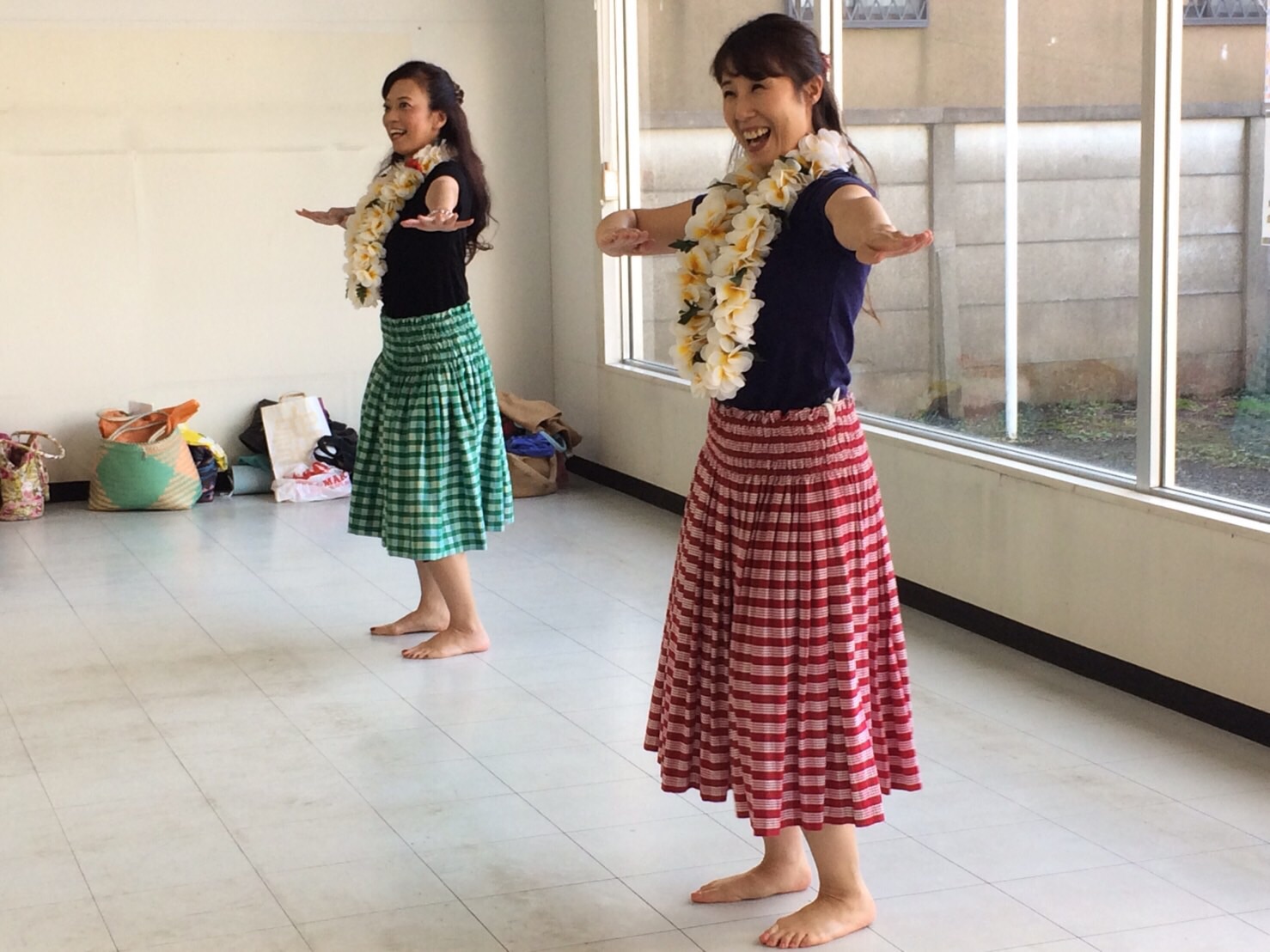今回はお子様から大人までみんなが楽しめるプログラムになるよう、全くの初心者さんもリズムに合わせ体を動かせるものから、しっかり腰を動かしフラ体験できるものまで3曲を体験していただきました。