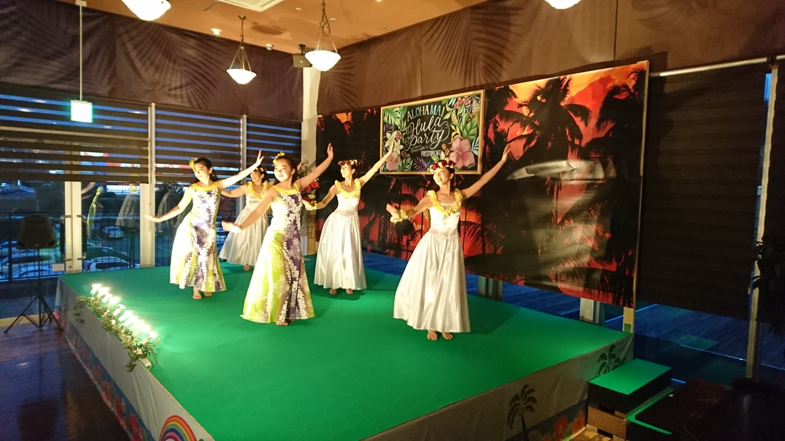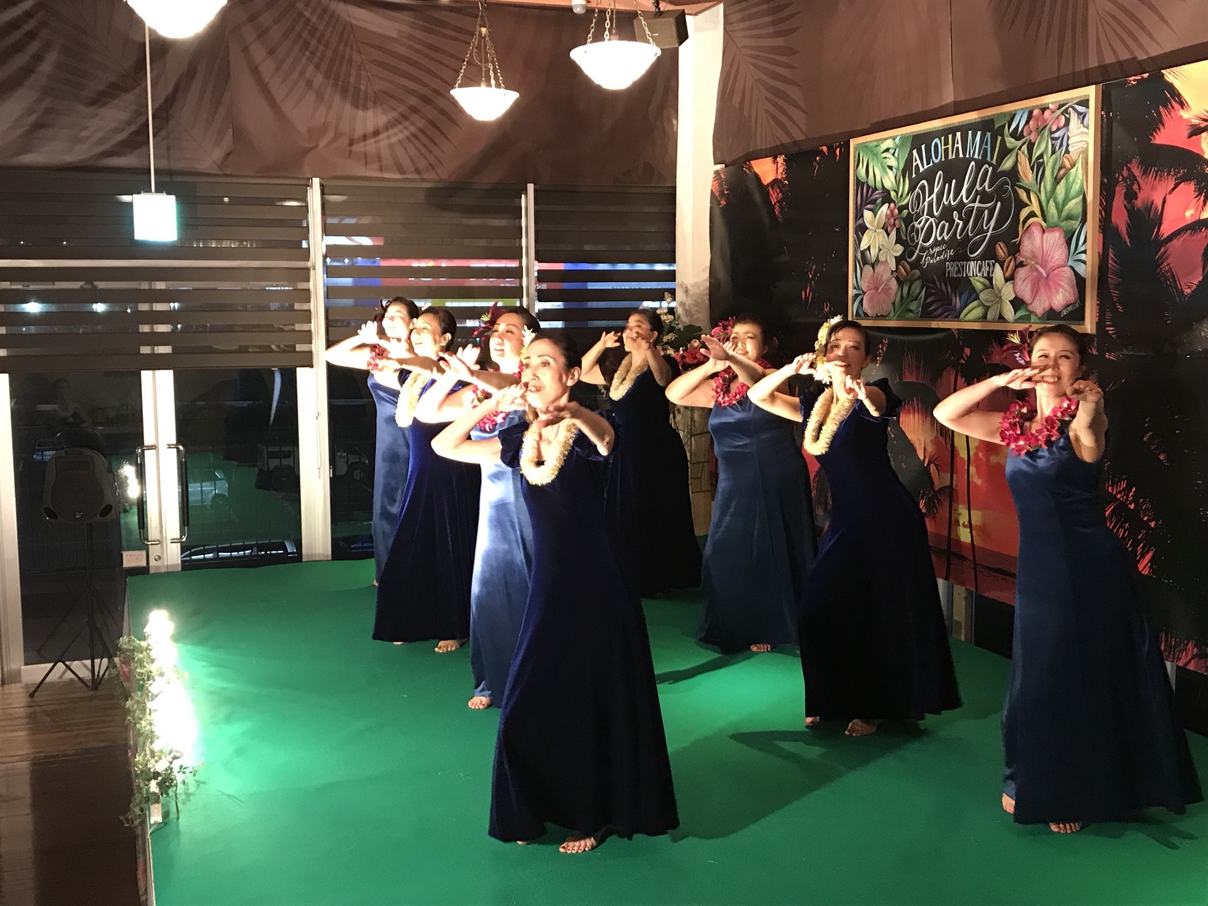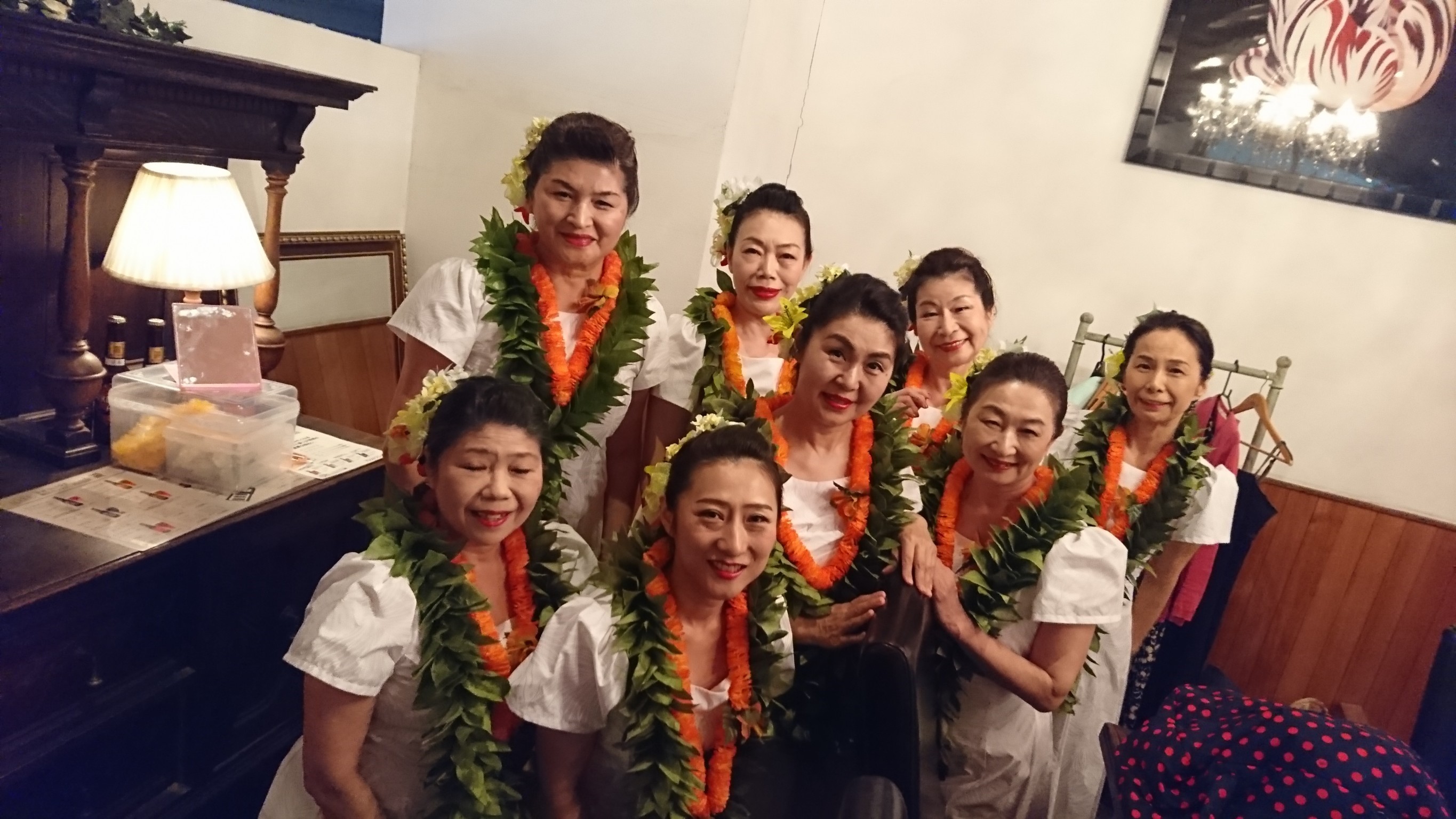 その後、色とりどりのドレスやお花の髪飾り、レイを身にまとい、1時間で16曲披露させていただきました。