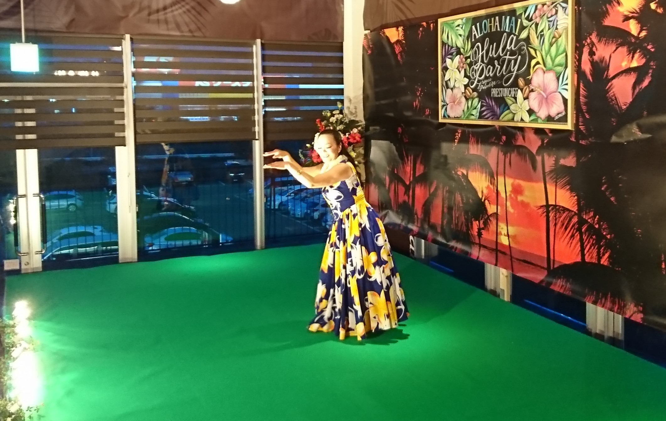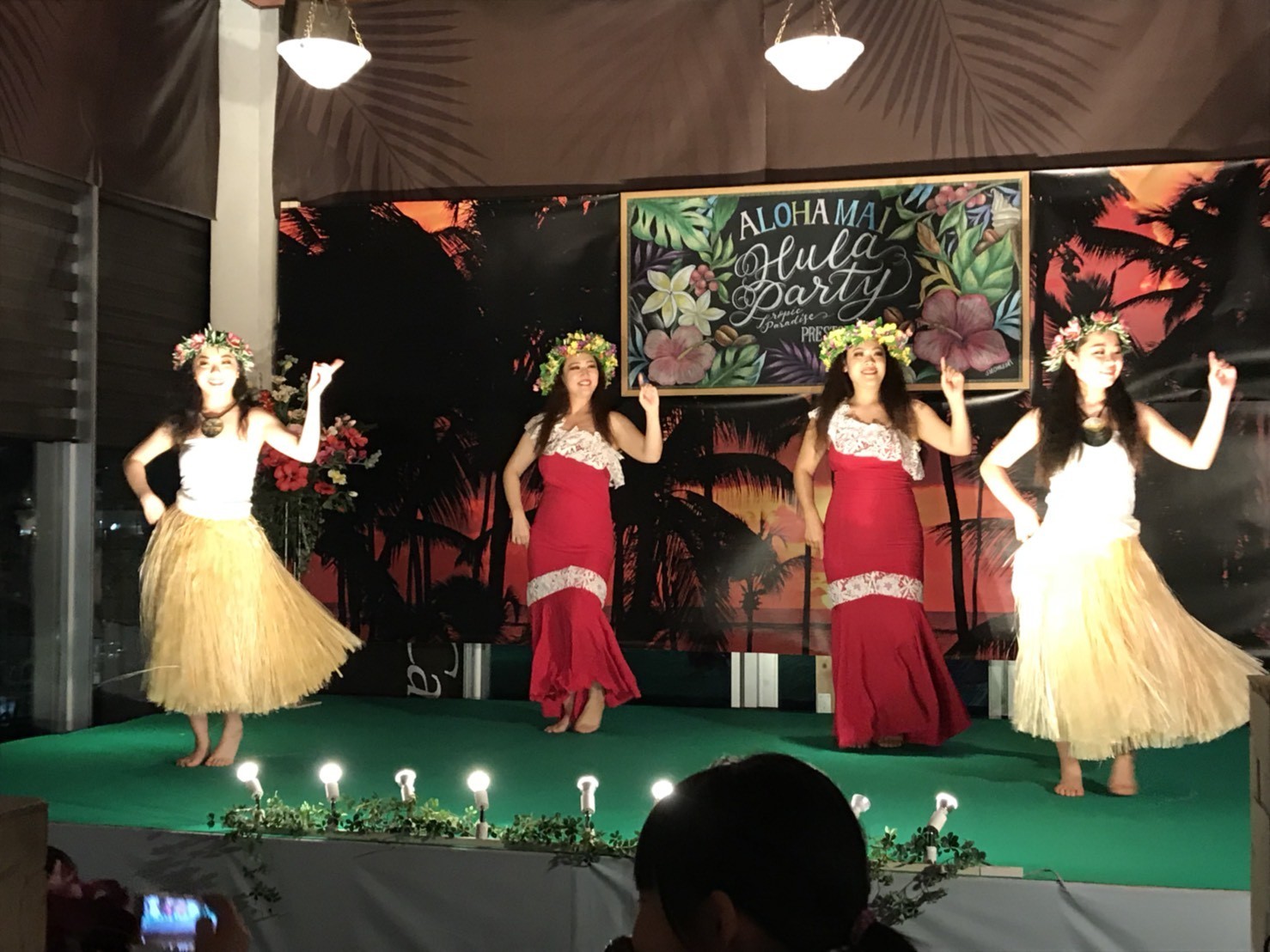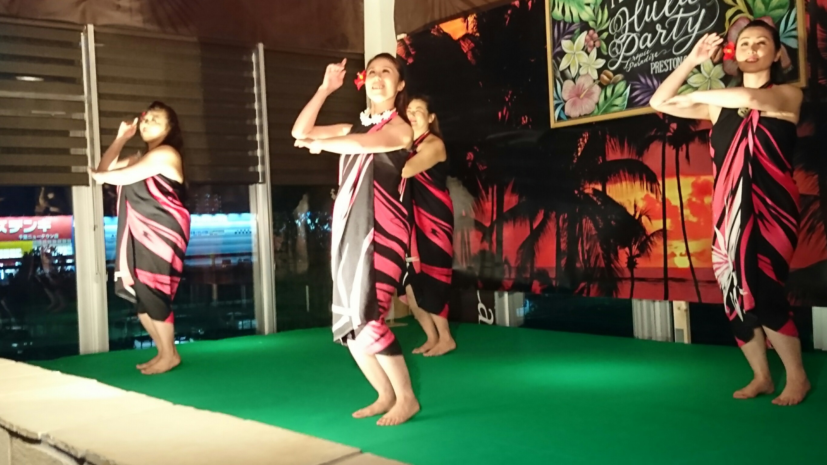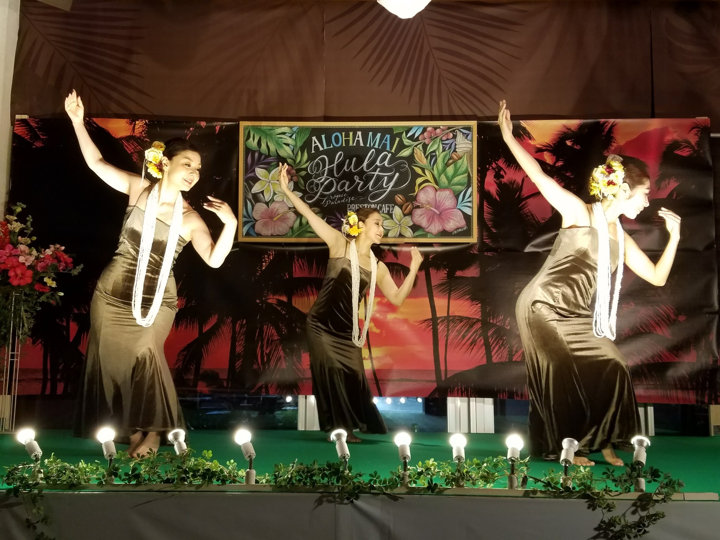 その後、色とりどりのドレスやお花の髪飾り、レイを身にまとい、1時間で16曲披露させていただきました。